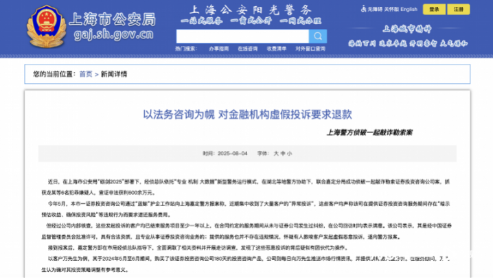 与此同时,案件侦破也在加快脚步,2024年初,有涉及证券投顾的“代理维权”案件被宣判,不过,彼时案件定性为“侵犯个人公民信息罪”。发展至今年8月,随着全国首例以涉嫌敲诈勒索罪立案的证券领域非法代理维权案件被侦破,量刑处罚力度方才“上一台阶”。
